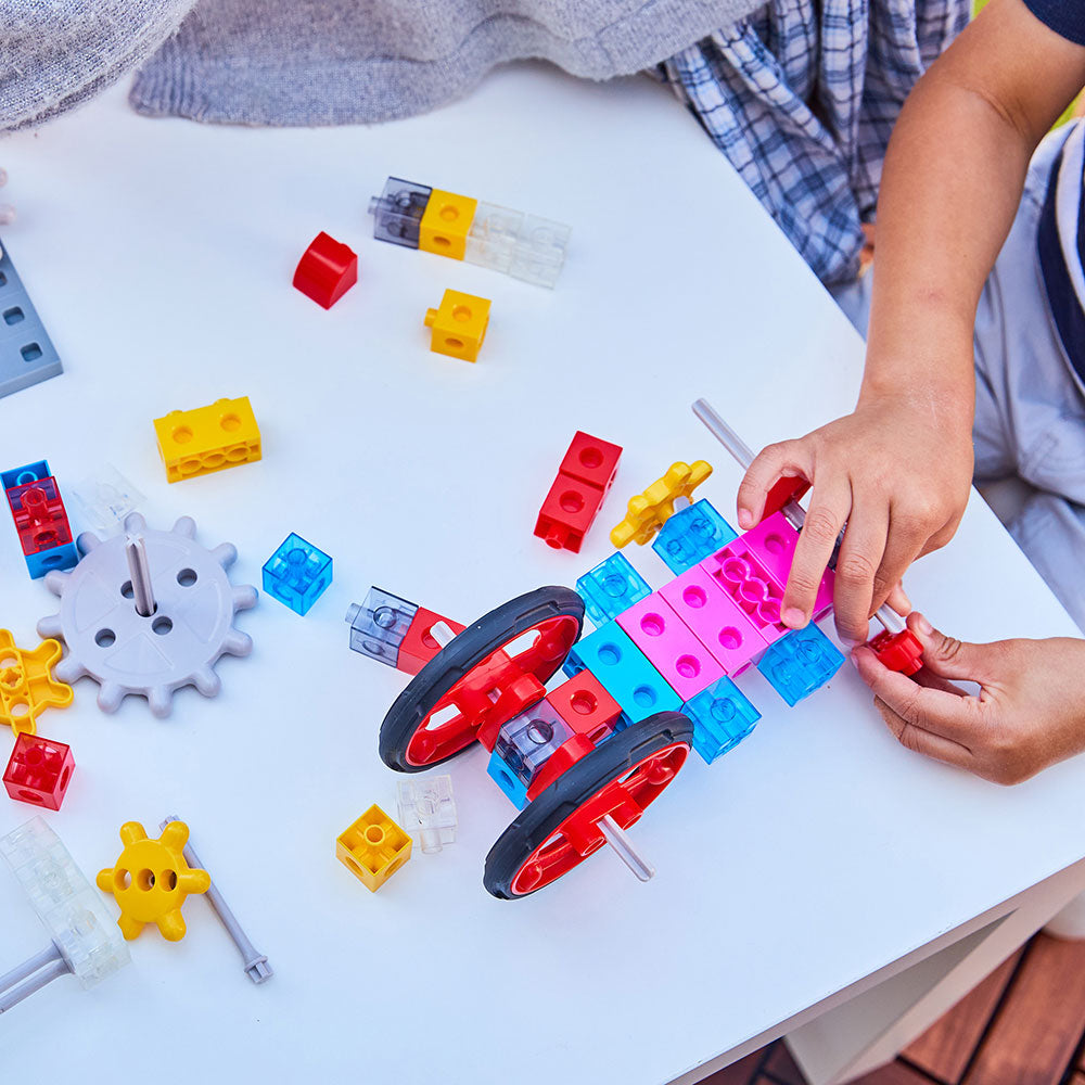 Our Edx Education® My Gears® Junior Set is an essential educational tool for children. Open-ended educational toy for our junior engineers to push, pull and turn while developing their creative thinking and problem solving skills. My Gears® links science, engineering, mathematics and art. It will stimulate children™s imagination and creative thinking skills. Valuable educational tool for all kindergartens and home activities. Children create endless games & fun activities playing with My Gears®.
